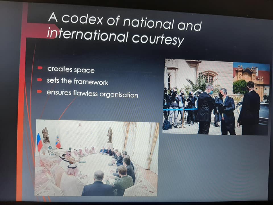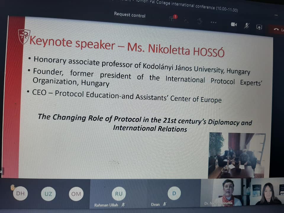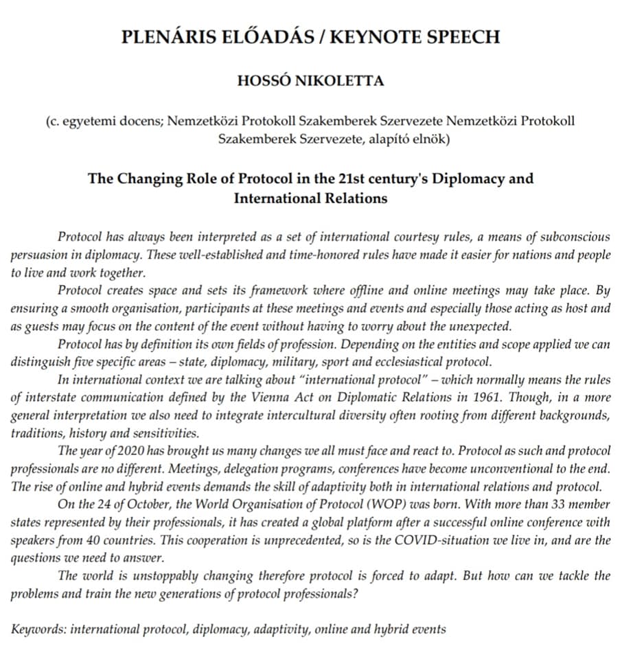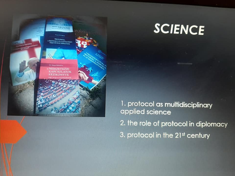 Előadásának címe: „Changing Role of Protokoll in the World of Diplomacy and International Relations”.