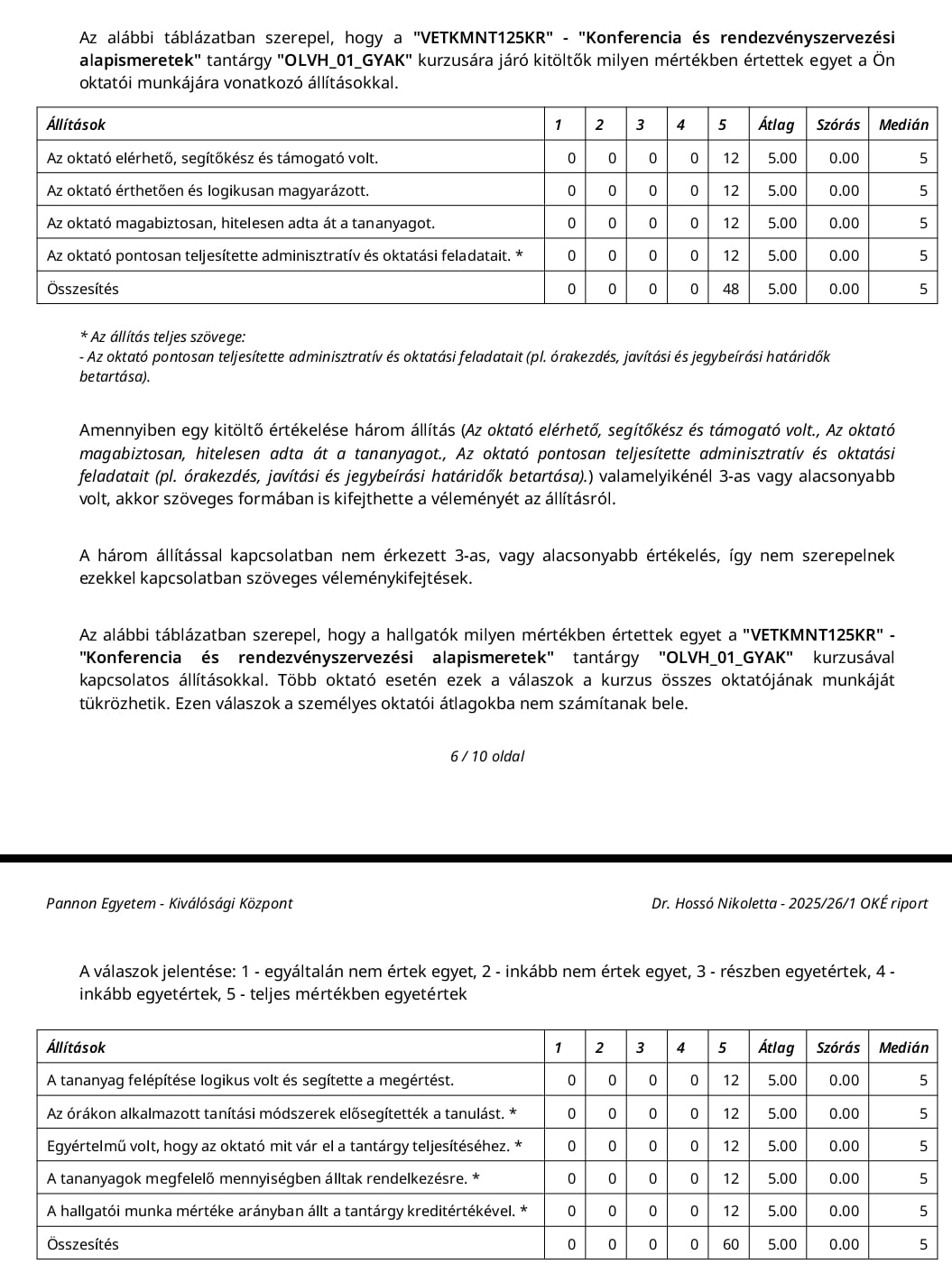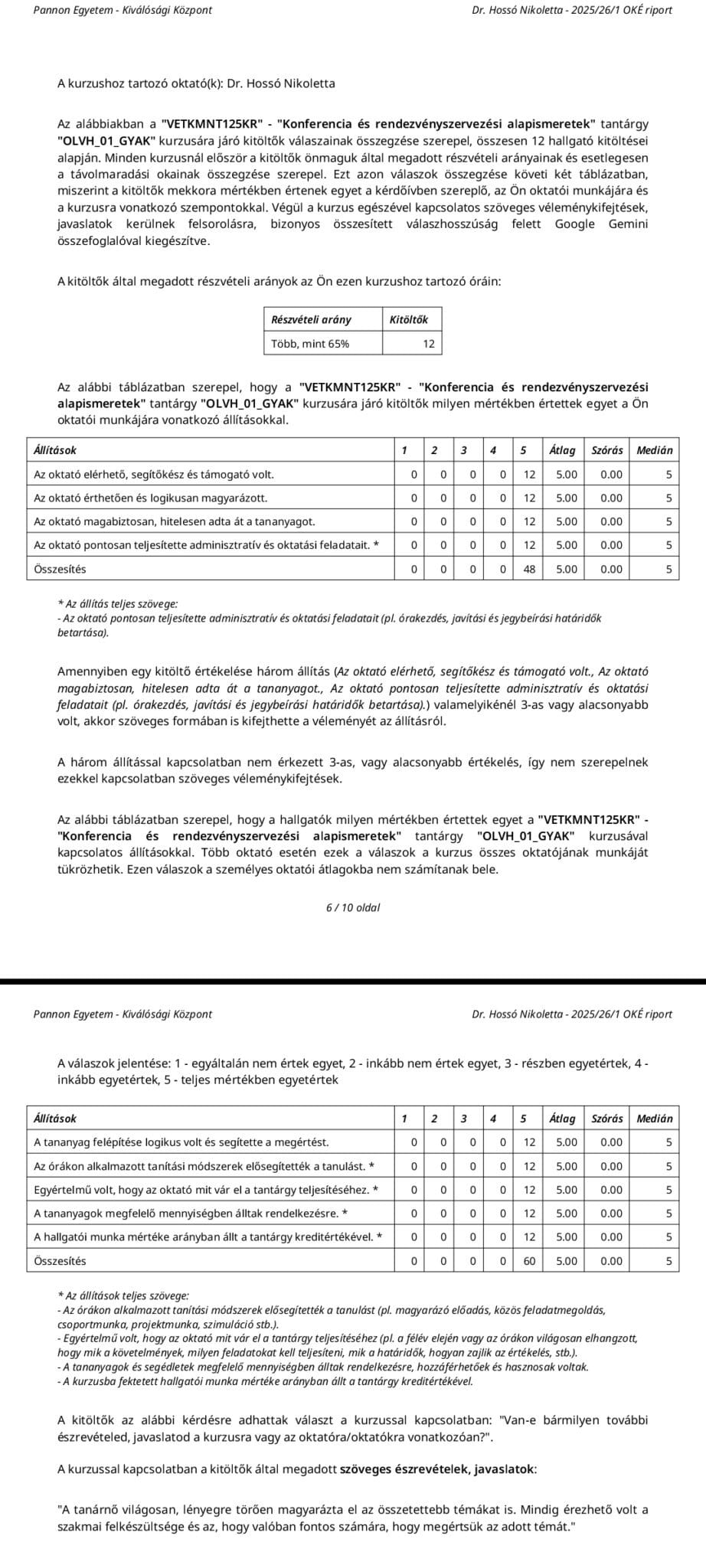 Szintén óriási büszkeség és öröm számunkra, hogy Dr. Sólyomfi Andrea Hanna NPRSZ tagunk, a képzés állandó társoktatója által vezetett két tantárgy hallgatói értékelésének kumulált átlaga szintén 5.0.